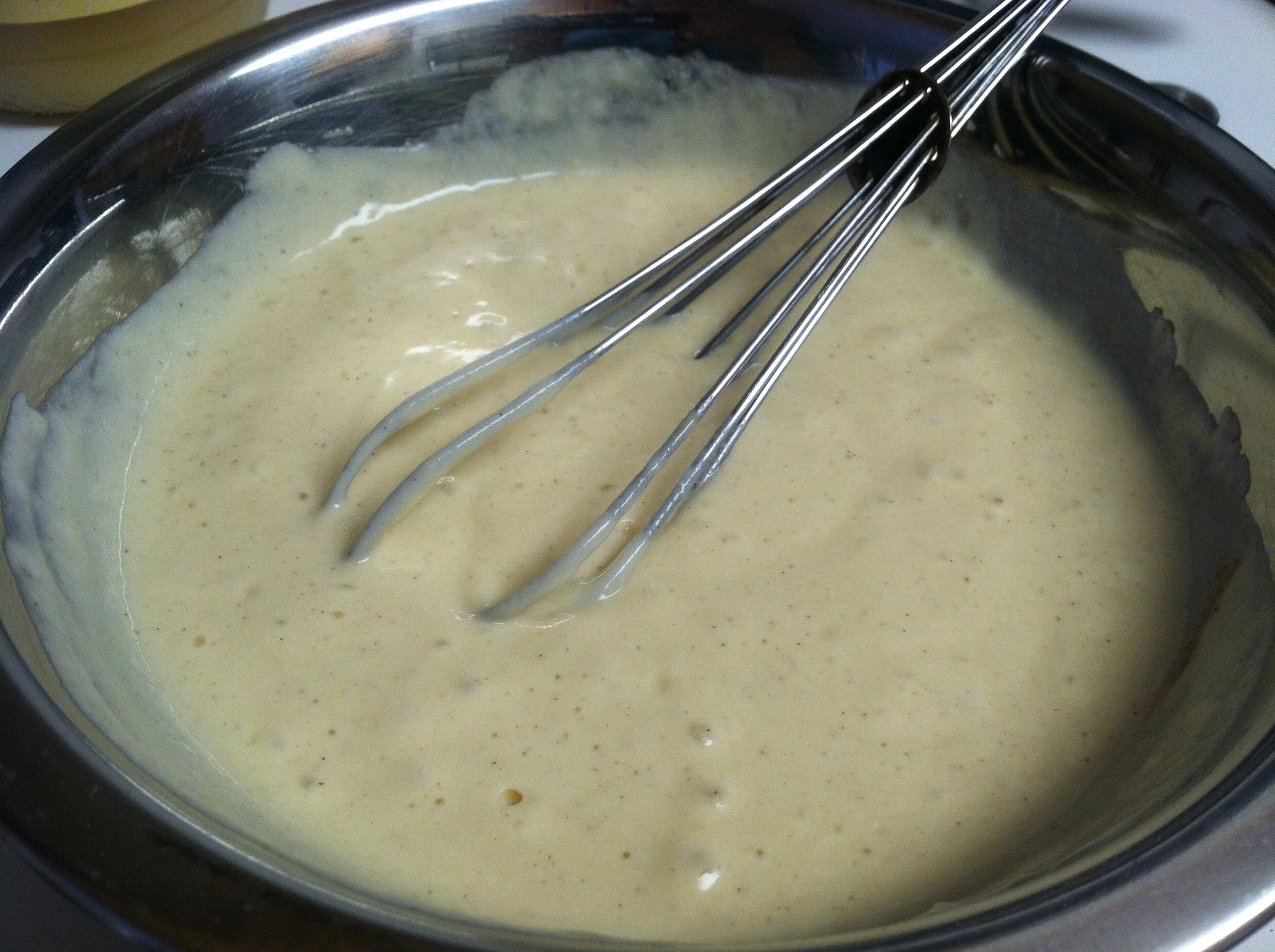 -Use a whisk and mix all the ingredients until smooth and thick, the batter should be runny.