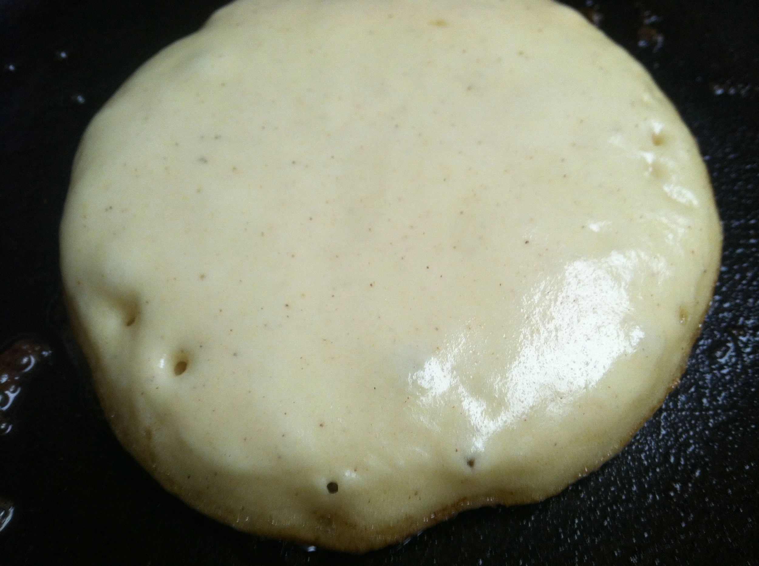 -Pour 1/5th of the batter on your pan, if you have a large griddle you can make 2 or 3 at a time. Otherwise one at a time. Patience = Great Pancakes.