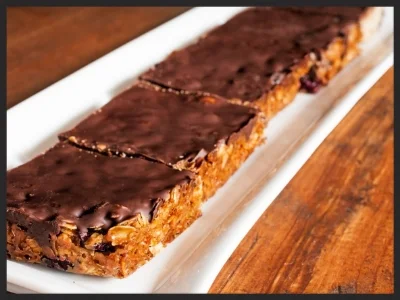 - Melt chocolate bar and spread over flapjacks.
